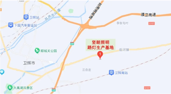 宅男噜观看照明路灯生产基地位于河南省新乡卫辉市,地处中原腹地,交通物流便利,周边有省道(S101)、国道(G107)、国家高速(G4)以及郑济高铁(卫辉南站)。