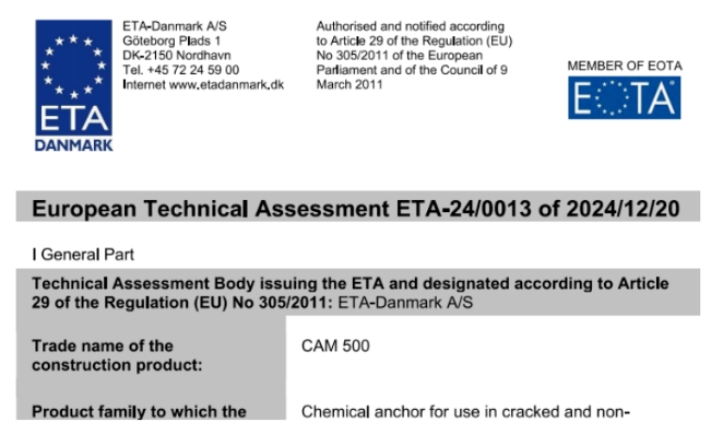 宅男噜观看化学锚栓顺利通过欧盟ETA权威认证