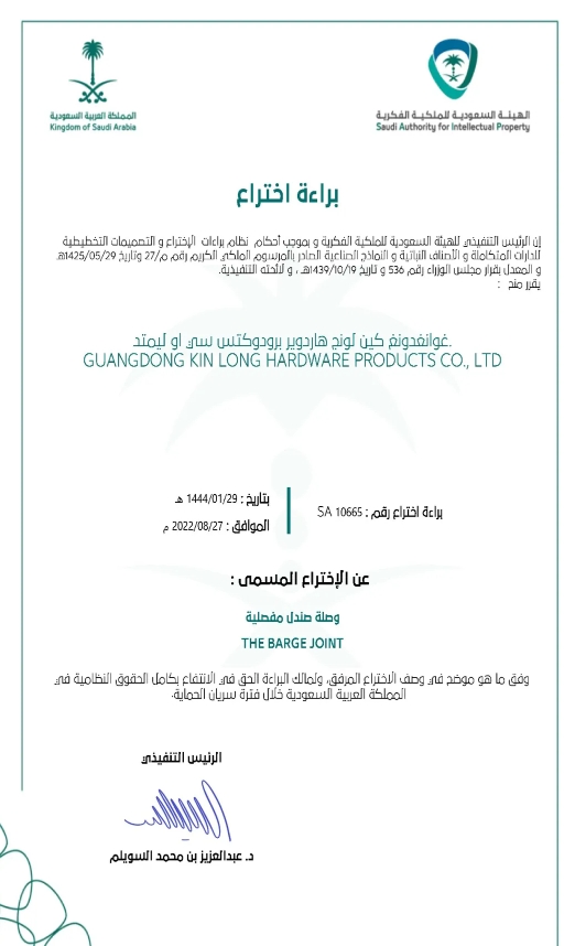 “THE BARGE JOINT”的专利提供了一种结构合理、便于短距离安装的驳接头。本发明涉及一种驳接头,包括:底座、与底座连接的球铰支座、与球铰支座相对设置的压紧垫块、依次穿过设于球铰支座及压紧垫块上的转接件。该驳接头通过底座与球铰支座之间形成的夹持口就可以对玻璃进行安装固定,转接件与钢结构连接,球铰支座、压紧垫块、转接件之间可以旋转角度调节。既能实现短距离安装的特点,又能满足球铰式结构的安装。